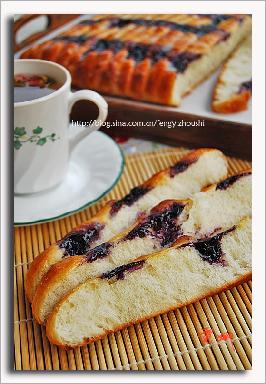 自从找到好的面包基本面团的方子以后,我就很钟情去试各种各样的面包来满足家里嘴已经蛮挑剔的孩子们,这款是自制蓝莓果酱后做的面包,孩子们为之疯狂!以致我只要做了蓝莓果酱就一定被要求烤这款面包的。强烈推荐!市售的蓝莓果酱或者其他口味的果酱都可以的。 还有,因为这款面包的造型很奇特,一根一根撕开来很有趣,出去野餐或者聚会带着当主食也都很受欢迎。基本面团的方法请参考:http://www.hoto.cn/recipe/11973