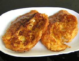 3.取平底锅,加入色拉油烧热,把泡软的面包片依次放入锅中煎,煎到两面成金黄色,捞出沥油即可。