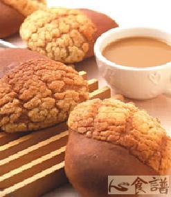 软式面糰:401公克,可可粉24公克,新鲜酵母12公克,奶粉16公克,细砂糖48公克,盐4公克,水201公克,蛋24公克,奶油48公克,波萝皮:99公克,细砂糖53公克,酥油66公克,全蛋33公克,其他:200公克,蛋液适量,奶油适量