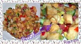 1.把白菜一小片、一段黄瓜和一个小西红柿切丁,火腿、洋葱切粒,冰冻的玉米粒适量,四片土司面包切小块。