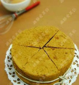 4、烤箱预热170度。入烤箱40分钟。轻拍蛋糕表面没有沙沙声即可出炉。出炉后倒扣。
