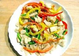 1、将面粉用水和成面团,切成面片,坐锅点火倒入水,待水开后放入面片煮熟捞出过凉,柿子椒切成丝备用;