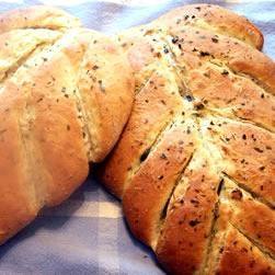 这是普罗旺斯香草面包的食谱, 这种面包是意大利香草橄榄油面包的法式做法, 顶上有混合的药草。可以在这种面包的基础上划切成各种形状,或划出狭长的口子做成框架状, 方便一个一个分开拿。