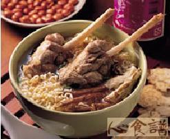 带骨猪腱2支,当归1片,米酒1大匙,水5杯,泡面面条1包,泡面胡椒盐粉包1/2包