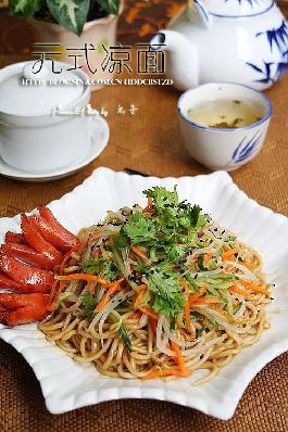 面条,盐,糖,鸡精,酱油,醋,花生酱,香油,胡萝卜,黄瓜,绿豆芽