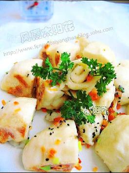 熟馒头,油,稀淀粉水,胡萝卜粒,葱花