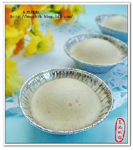 3.把面糊倒入杯中(我用的是做蛋挞的小杯子),装7七分满,再饧发20分钟,放入开水锅中大火蒸10-12分钟即可。