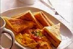 3.平锅内放入奶油,融化后再放入2的土司,煎到两面呈金黄色后即可起锅。