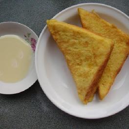 蛋液要裹住面包,但面包不可在蛋液中放置时间过长,否则面包吸收蛋液过多会很软,拿不起来。 也可用油炸的方法,但面包吸油会多。 煎好可放在纸巾上把表面的油吸走,可以少摄入些油脂。 煎制时要把三个边也竖起来煎一下,让侧面沾上的蛋液也熟了。