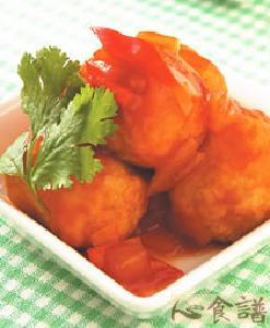 3.另取锅,锅内放入洋葱末、水及所有调味料(太****水先不放)拌炒均匀,加入太****水勾薄芡,再淋入作法2的丸子上即可。
