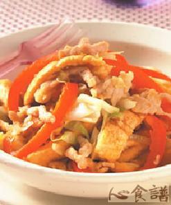 土司边150公克,肉丝50公克,红甜椒1/4个,高丽菜丝20克,洋葱丝15公克,沙拉油2大匙,蚝油1茶匙,盐1/4茶匙,胡椒粉少许,酱油1茶匙,酒少许,太****1茶匙