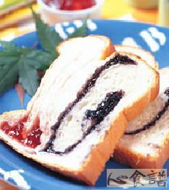 中种面糰:278㏄,高筋面粉464公克,速溶酵母9公克,主面糰:46公克,水24㏄,高筋面粉116公克,细砂糖58公克,盐6公克,改良剂6公克,奶粉35公克,全蛋58公克,其他材料:100公克,蓝莓果酱100公克