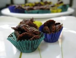2.巧克力待凉后,加入玉米片搅拌均匀