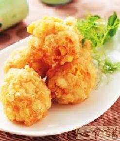 3.热锅倒入适量油烧热至油温约180℃,依序放入作法2玉米球,以中火油炸至外表呈金黄色,捞出沥干油脂即可。