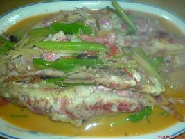 起油锅,把蒜段、番茄片、姜丝、辣椒丝全部倒进去炒出香味,再把红鱼放进锅里。加适量水,再加豆鼓。 加盖闷熟就OK。