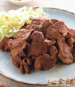 3.热锅倒入适量沙拉油烧热,放入姜末小火爆香,放入作法2猪小里肌肉片炒至变色,倒入作法2剩余的腌汁小火烧煮至略收干,盛出放在作法1上即可。