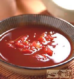 2.将作法1的去皮蕃茄切成碎末状,并和全部的调味料混合搅拌均匀即可。