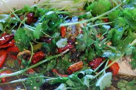 佐料:火锅底料1大块,郫县豆瓣2大匙,豆豉适量,大蒜1整头,生姜一大块,色拉油1大匙,干辣椒一小把,清水小半碗