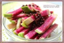 胭脂萝卜(心里美)半只,花椒1小把,盐半汤匙,鸡精,香油适量