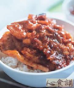 4.取一碗适量的白饭,将烤好的烤肉片放在白饭上,再配上自己喜欢的小菜与配汤,就可以开始享用了。