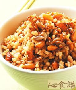 核桃10公克,松子10公克,高梁20公克,糙米120公克,亚麻仁10公克,葵瓜子仁10公克,水120㏄