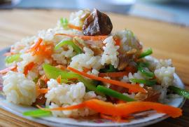 继续炒米饭,加青菜一点盐,一起翻炒3分钟