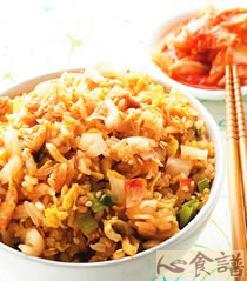 葱花10公克,韩国泡菜20公克,鸡蛋2颗,白饭1碗,白芝麻2公克,沙拉油20㏄,盐适量,白胡椒粉适量