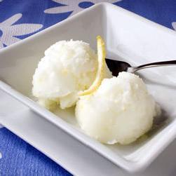 2.然后在一个大碗里,把做好的柠檬糖浆倒进冰激淋机里,按照机器的指示制作冰糕。然后撒上柠檬皮碎作装饰。