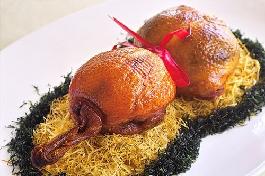 八宝葫芦鸭,全鸭皆无骨,酿入八宝糯米饭为馅料,软糯醇鲜,肥而不腻,非常适合老人和小孩子,中秋的家宴不妨来试试做这道吉祥如意的应节菜吧!