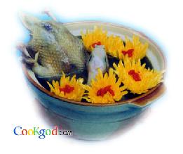 特点 清心明目,菊香浓郁,口味咸鲜。 制作关键 先中火、后小火炖制,原料鲜味才完全突出。 注:江苏射阳洋马所产的菊花全国闻名,是著名的药材。