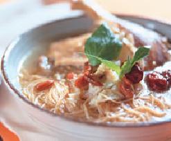 2. 将中药卤包与作法1的鸭块、水一同放入深锅中,以中小火焖煮1小时以上,加入调味料B拌均后,将汤汁注入烫熟的面线汤碗中,再摆上鸭块、洒上九层塔与酒即可。