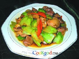 主料:仔鸭600克,苦瓜100克,生姜片5克,小红椒20克。调料:茶油100克,白酒、味精各2克,盐5克,蚝油5克,高汤50克。