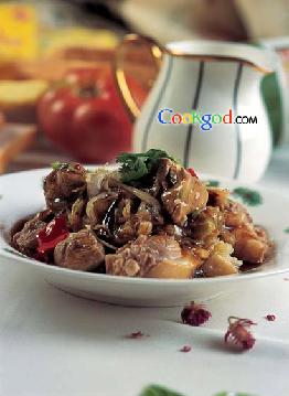 1.鸭肉洗净、剁块;姜洗净、切片;把鸭、姜片一起放入沸水中煮30 分钟,捞起;