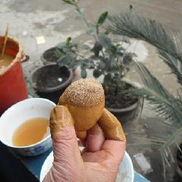 4将鸭蛋放到泥里滚一转,然后大头沾酒,沾五香粉和盐的混合物,放入塑料袋里。