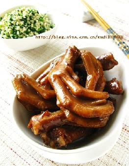 女儿从小就喜欢啃骨头,对那些啥猪蹄、凤爪、鸭脖子之类情有独钟,常常是啃得津津有味欲罢不能。所以我经常会买些带骨头的东东回来。最方便也是最常做的就是用糟卤做糟猪蹄、糟凤爪了,或者用烤箱烤个蒜香烤翅,这在我们家都是很受欢迎的菜肴。心情好的时候会做那个比较麻烦的豆豉凤爪,如果时间充裕的话也可以做卤鸭掌了。 卤鸭掌形状完整,皮软肉酥,味道浓郁醇厚,也是国庆中秋佳节亲友团聚,佐酒小酌的佳肴。大家不妨一试。