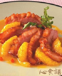 鸭胸200公克,柳丁片10片,糖1/2小匙,柳橙汁2大匙