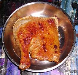 制作:1.鸭子清远干净,把鸭腿里面的油都撕干净。不撕也行,反正也会把它煎的一干二净。
