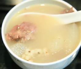 锅入油,五成热时放入葱段和姜片炒香,再倒入鸭块炒变色后放入开水,薏米炖1小时。