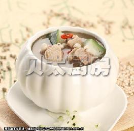 老鸭1/2只,薏米40g,冬瓜400g,老姜(切片)3片,广东白酒(或黄酒,料酒)10ml,盐10g,水3000ml