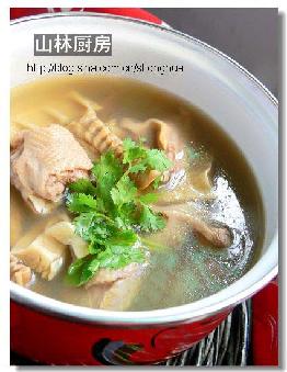 老鸭一只,笋干60克,老干姜10克,盐适量,酒适量,水足量