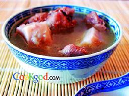 4. 煮沸瓦煲里的清水,放入所有材料,武火煮沸,转文火煲一个半小时,下盐调味即可食用。
