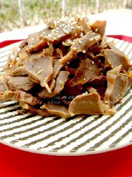 4.由于东西少,压力一会就消失。打开锅盖取鸭肫,切片。