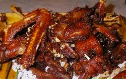 4. 将青红椒与鸭块拌匀,均匀浇入花油、盐后放入烤箱;