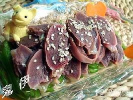 1.鸭胗洗净血水,入沸水煮透后去表面的膜。