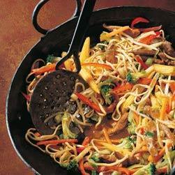 各种新鲜蔬菜和生、熟肉均可作为炒面的浇头。炒面加上炒鸭肉和微甜的海鲜酱后,香味四溢,并富含维生素A、B族、C、E,以及叶酸、锌。