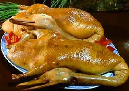 鸭身治净,用盐擦透鸭身,放缸中腌4小时,中间须翻动一次。