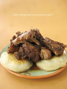 2.炒锅不放油,放入鸭和葱姜煸炒,放入开水和八角、香叶煮开后小火闷一会,再放酱油、糖,继续煮至熟。(各家有各家的做法,这是我家的烧法)