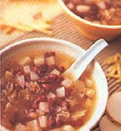 主料:熟鸭肉丁,熟胡萝卜丁,火腿丁,熟香菇丁,熟豌豆丁,熟莲米,鸡汤