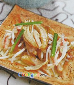 调味料中增加红油、树椒丝,称红油鸭丝掐莱;增加腐乳汁,则称为腐乳鸭丝掐菜。