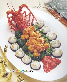 用料主料:大龙虾1只(1000克)配料:鱼蓉、水发香菇、青椒、蟹黄、西兰花调料:绍酒、精盐、味精、熟咸鸭蛋黄泥、白兰地、鸡蛋清、淀粉、精炼油